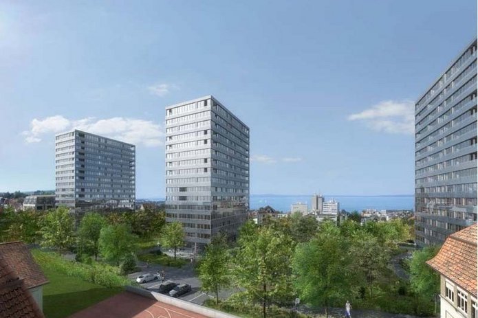 Die Hochhausüberbauung im Stadtwald in Rorschach wurde mit unseren Türdrückern und den passenden Fenstergriffen komplett ausgestattet.