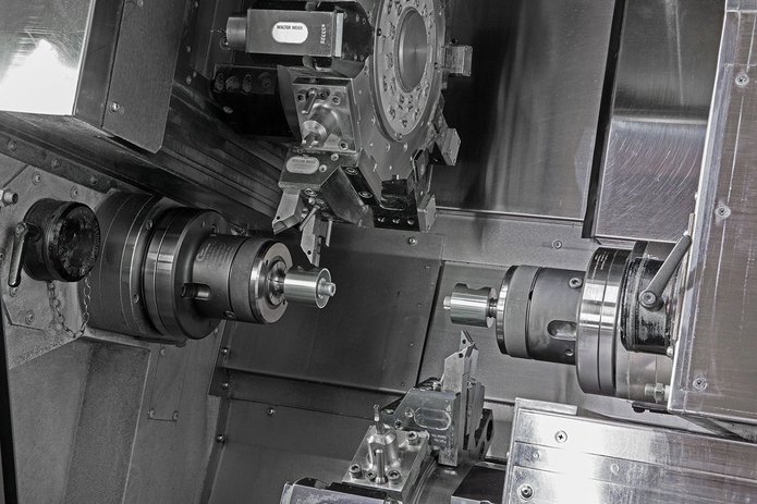 In unserer mechanischen Bearbeitungsabteilung arbeiten wir CNC-kubisch mit 3- und 5-Achsen-Maschinen mit Schwenkpalettentisch. Ebenfalls CNC-rotierend, mit Mehrspindel-Mehrachsenbearbeitung bis 120 mm. Für Grossserien produzieren wir auf Spezialanlagen mit automatischer Zuführung.