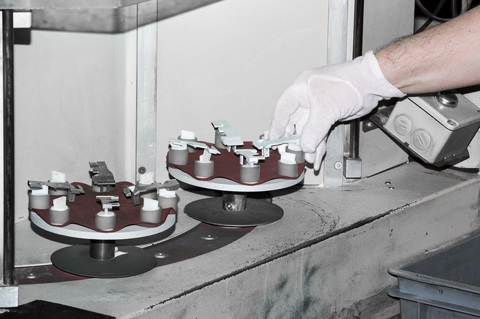 Der letzte Schliff der Oberflächen von Gussteilen entsteht durch Sand- oder Kugelstrahlen, Gleitschleifen, Schleifen, Bürsten und Polieren. Wir bearbeiten Ihre Gussteile auf modernsten Roboteranlagen oder von Hand, je nach Losgrösse und Komplexität der Bauteilkonturen.